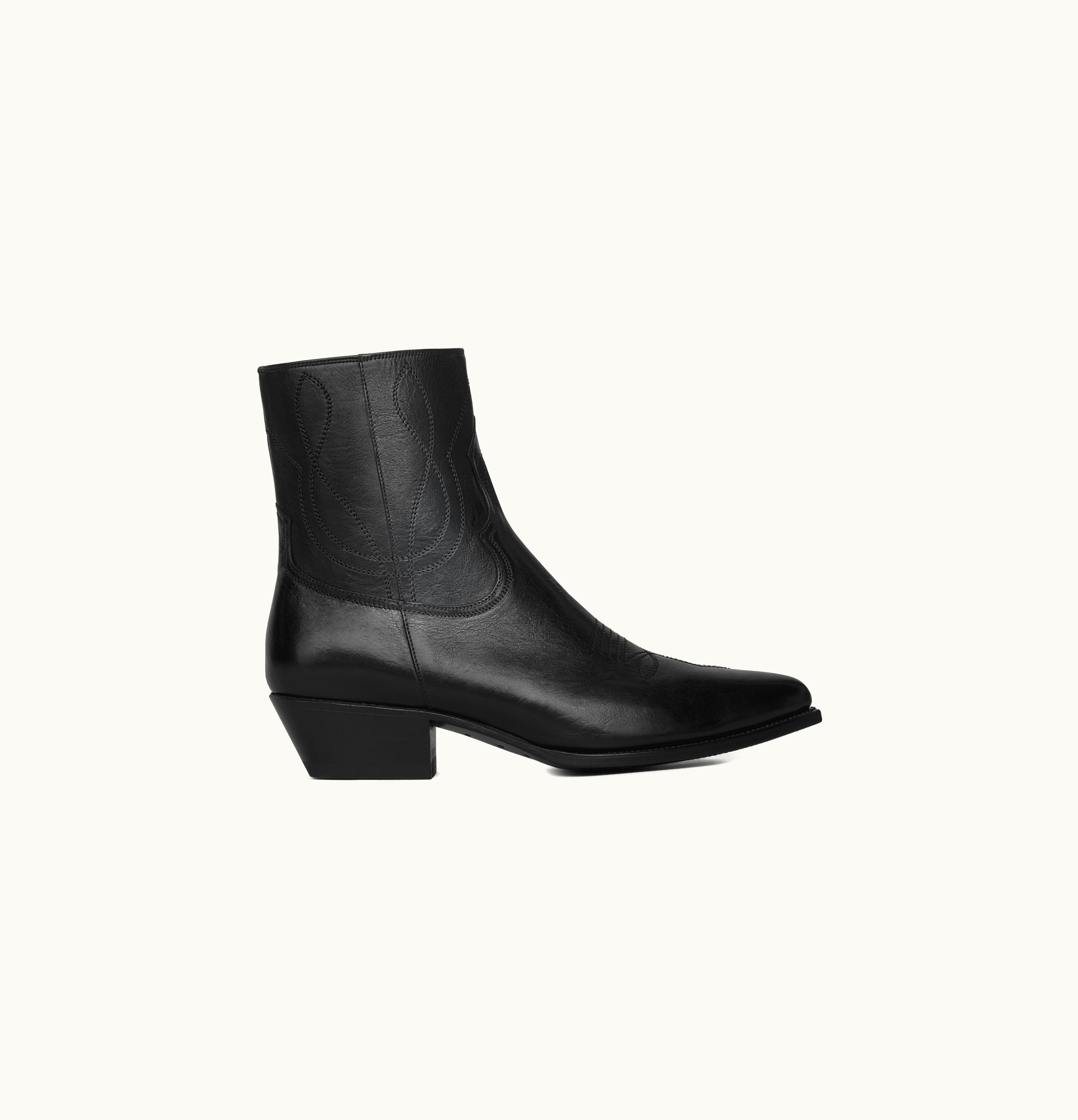 Celine Zipped Western Boots In Calfskin Black | GLINT