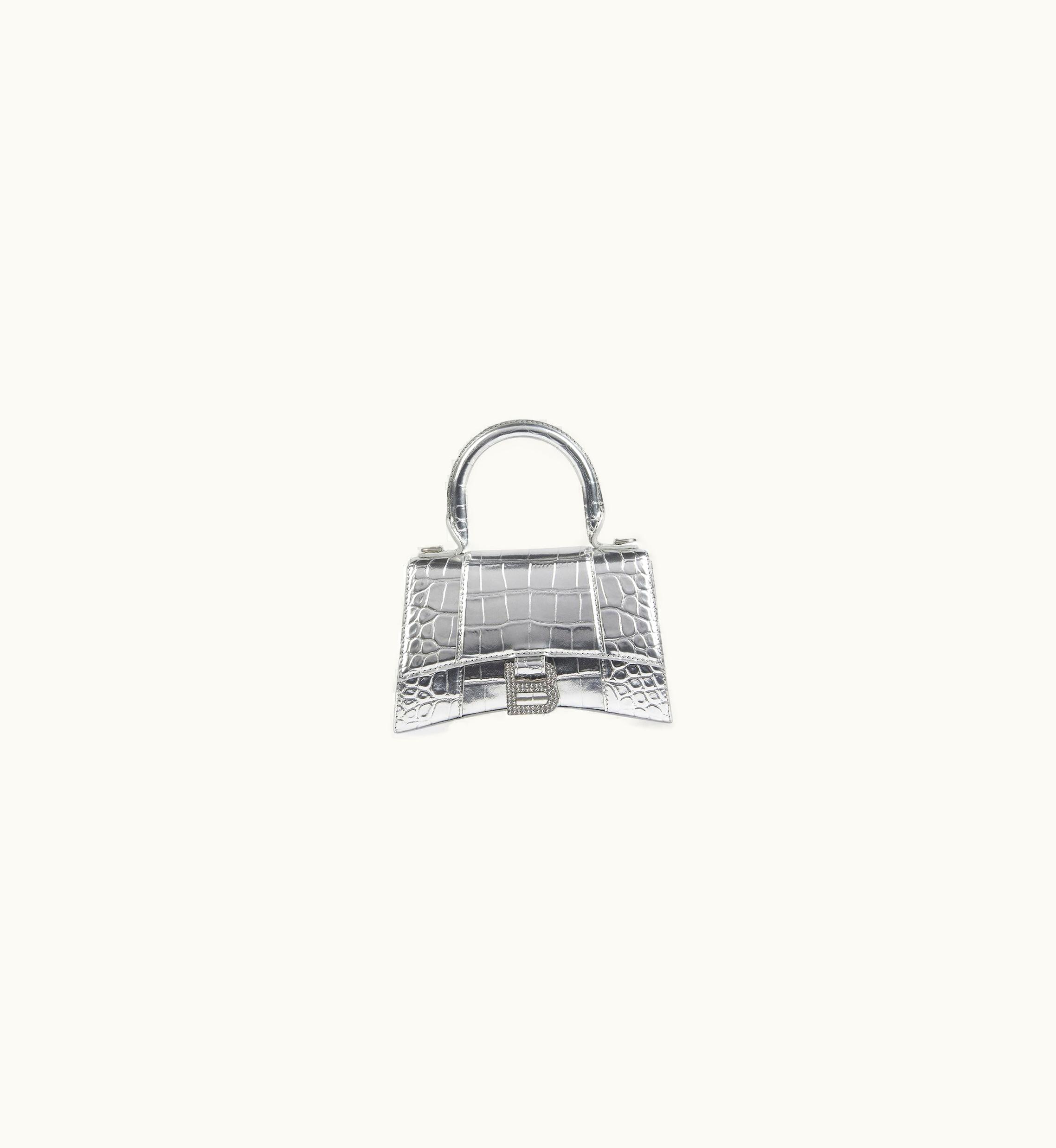Balenciaga Hourglass Xs Handbag Metallized Crocodile Embossed With Rhinestones